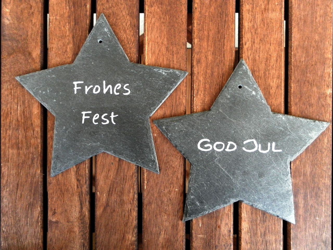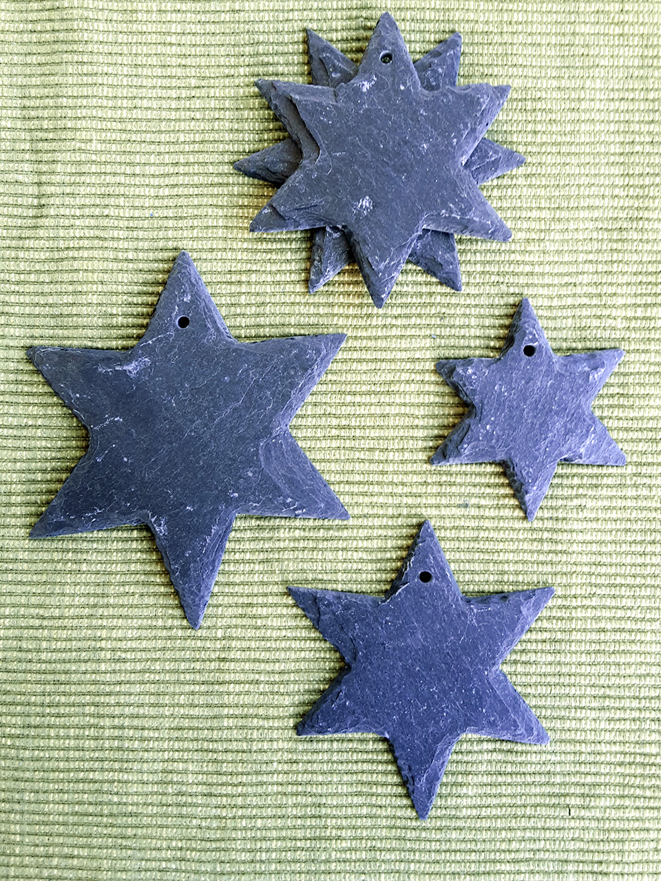 Schiefer im Wandel der Jahreszeiten – immer ein Blickfang, ob im Frühjahr ein Schmunzelhase, im Herbst ein sortenreiner Apfel oder im Winter ein hübscher Stern. Passendes aus Schiefer nutze ich zum Dekorieren gern.
